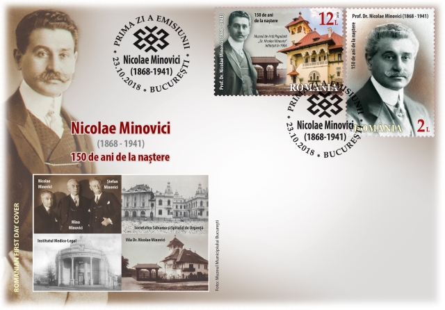 Romfilatelia dedică emisiunea de mărci poștale aniversară Nicolae Minovici, 150 de ani de la naștere unei personalități marcante a medicinei românești de la începutul secolului al XX-lea, cu o contribuție importantă la evoluția medicinei legale din România și promotor pasionat al tradițiilor culturale ale poporului român.