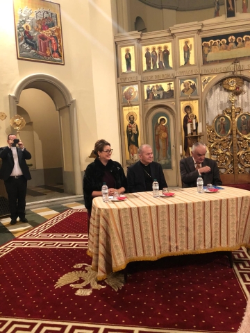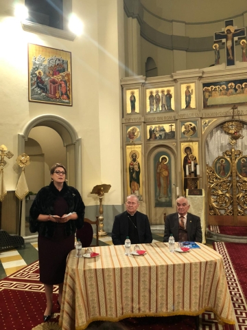 Pr. Isidor Iacovici a salutat prezența ÎPS Ioan Robu, a episcopilor români, reprezentanților Corpului Diplomatic, precum și a directorului general al Romfilatelia. Cu acest prilej a fost citit mesajul Excelenței Sale Klaus Werner Iohannis, președintele României, care a felicitat Conferința Episcopilor Români și participanții la eveniment pentru inițiativa de a se întâlni la Roma pentru a celebra, prin rugăciune și dialog, Centenarul Marii Uniri.