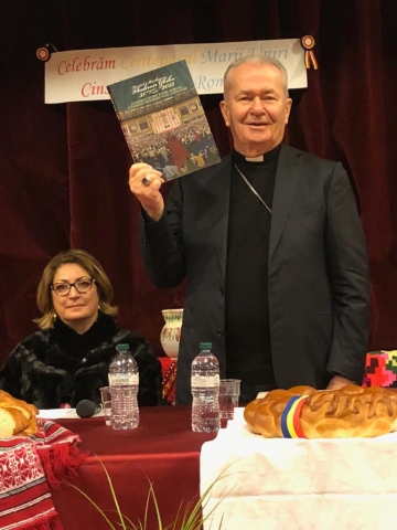 Monseniorul Ioan Robu a evocat în mesajul Eminenței Sale desenele realizate de Vladimir Ghika, care militau pentru Unirea tuturor românilor, acestea fiind ilustrate pe colița emisiunii de mărci poștale. În anul Centenarului Marii Uniri, a mai spus ÎPS Ioan Robu, emisiunea de mărci poștale dedicată lui Vladimir Ghika este concepută în lumina iubirii pentru Dumnezeu, pentru aproape și pentru patrie. Excelența Sa și-a exprimat speranța că, pe viitor, și alte evenimente sau personalități vor fi celebrate prin marca poștală.