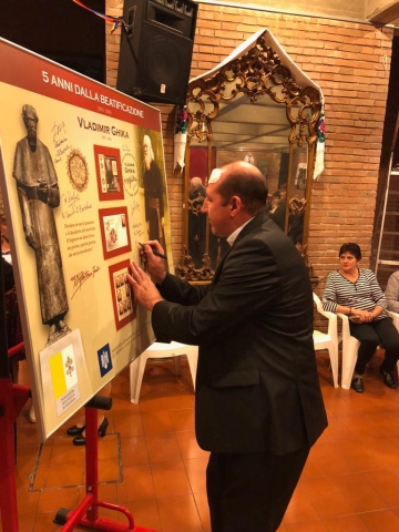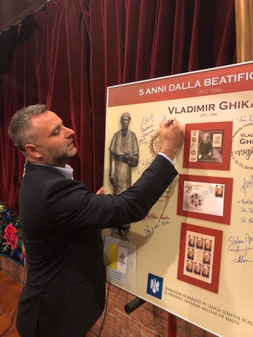 În data de 9 noiembrie 2018, sub patronajul Excelenței Sale Liviu-Petru Zăpîrțan, ambasadorul României pe lângă Sfântul Scaun și Ordinul Suveran Militar de Malta, a avut loc la Colegiul Pontifical Pio Romeno prezentarea emisiunii filatelice dedicată Fericitului Vladimir Ghika, în prezența unei audiențe distinse.