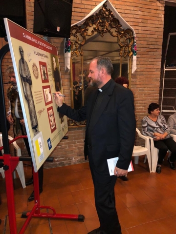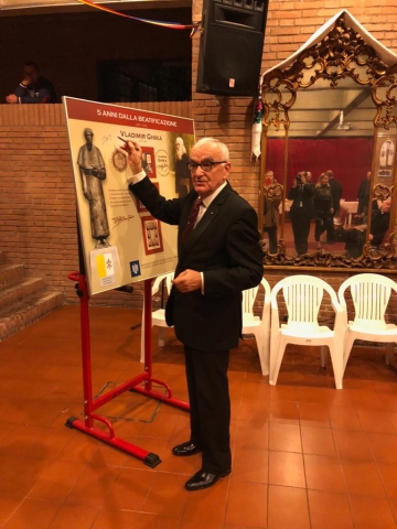 În cuvântul său, pr. Serafim Vescan Iulian, părintele paroh al Parohiei Unite cu Roma, Greco-Catolică a evocat personalitatea Fericitului Vladimir Ghika și a mulțumit Romfilatelia pentru emisiunea de mărci poștale omagială.