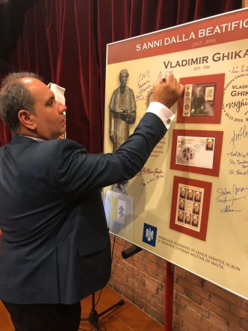 În deschiderea evenimentului, pr. Gabriel Buboi, rectorul Colegiului Pontifical Pio Romeno, a mulțumit Romfilatelia pentru inițiativa de a emite o emisiune filatelică dedicată lui Vladimir Ghika, o personalitate complexă a culturii și spiritualității românești.
