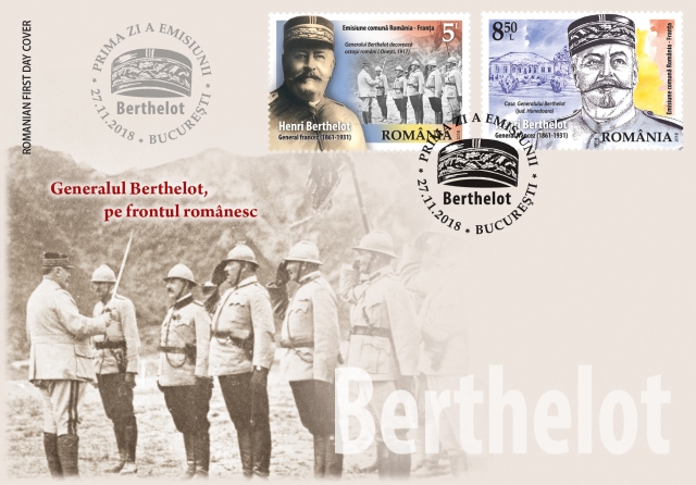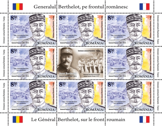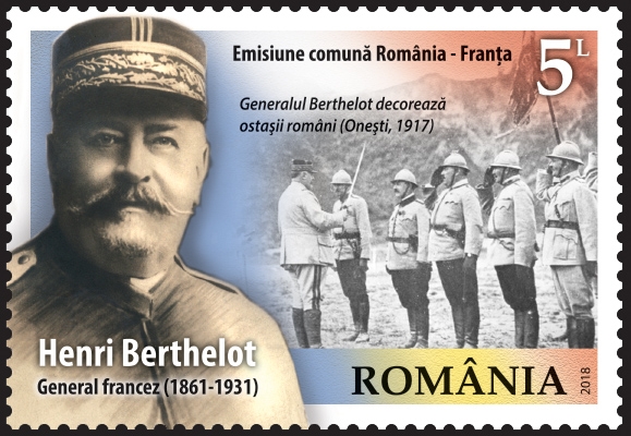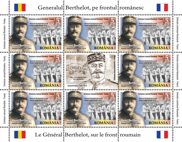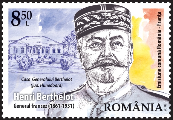 În anul Centenar al Marii Uniri, Romfilatelia marchează relațiile cordiale dintre România și Franța, țară care ne-a sprijinit în toate momentele importante ale istoriei, prin emisiunea comună de mărci poștale Generalul Berthelot, pe frontul românesc.