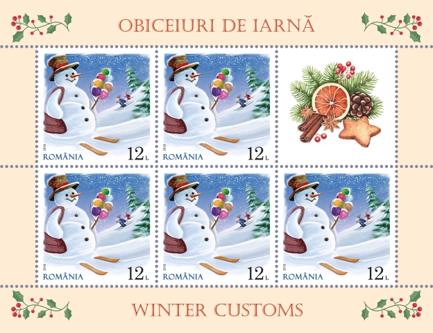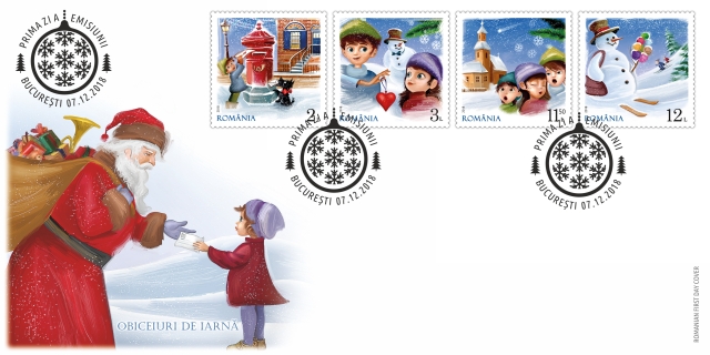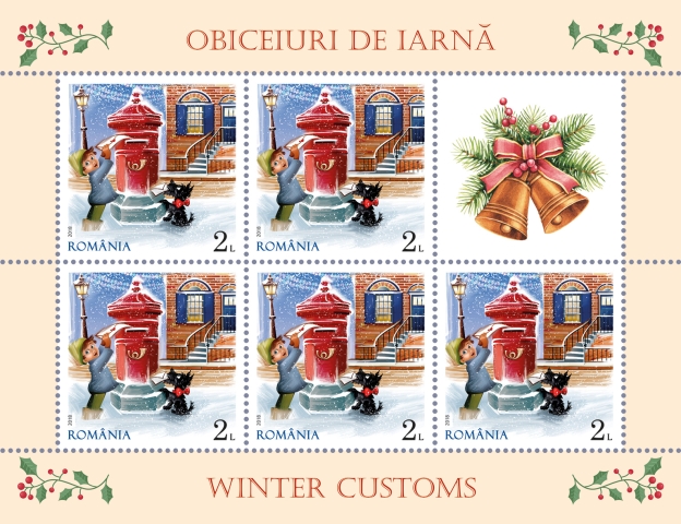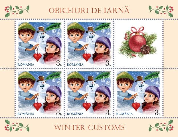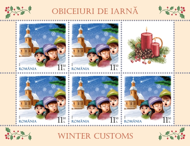 Cu ocazia Sărbătorilor sfârșitului de an, Romfilatelia introduce în circulație emisiunea de mărci poștale Obiceiuri de iarnă.