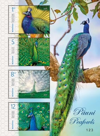 Romfilatelia introduce în circulație emisiunea de mărci poștale intitulată „Păuni“, vineri, 17 mai, a.c. Tematica Păuni se înscrie în preferințele colecționarilor de mărci poștale și această nouă emisiune va completa colecțiile lor cu imaginile a patru exemplare deosebite ale speciei.