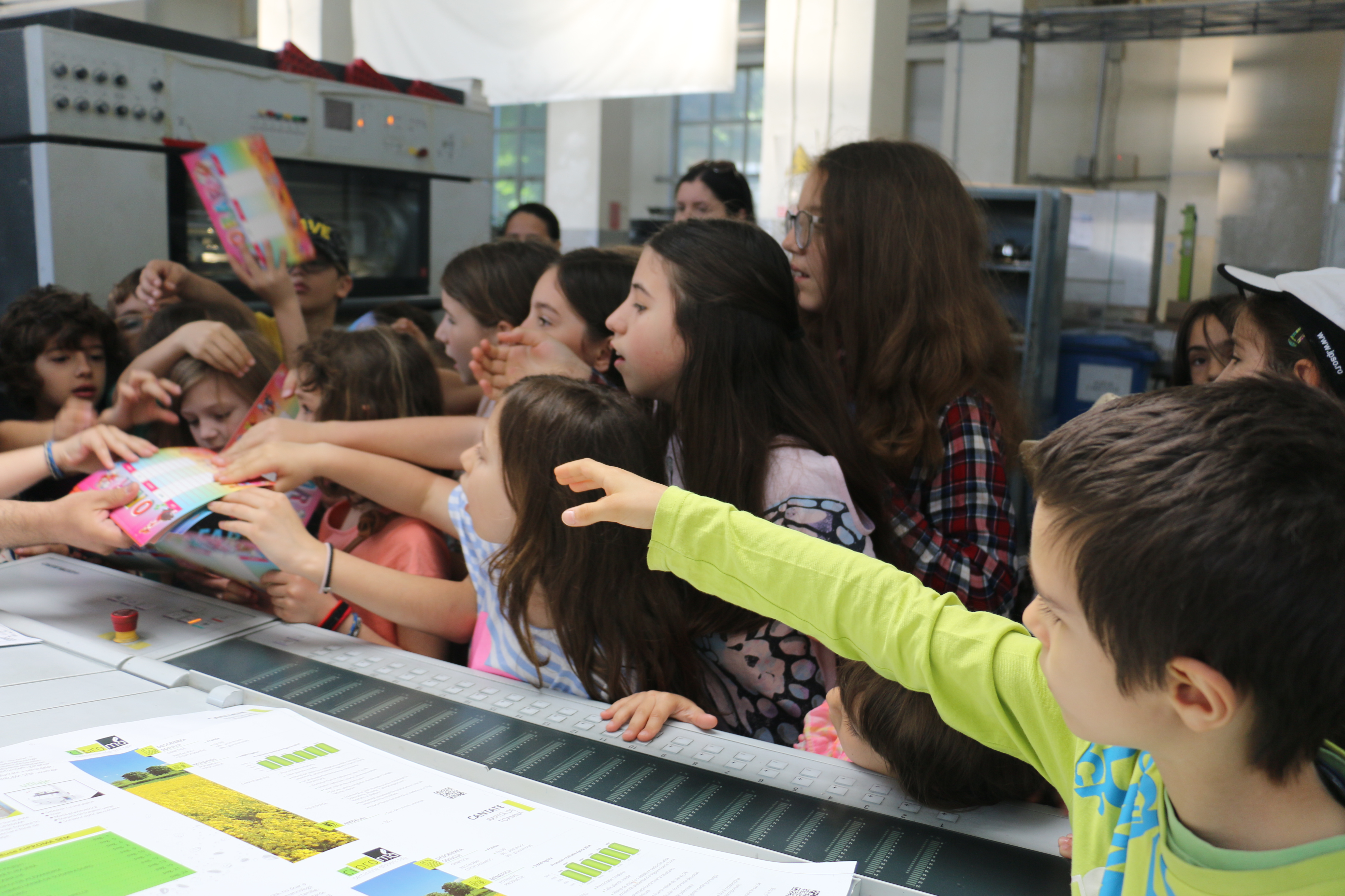 Elevii au vizionat întreaga gamă de utilaje folosite la tipărirea mărcilor poştale. Utilajele care le-au captat interesul copiilor au fost maşina de tipar utilajul Heidelberg şi maşinile folosite la perforarea mărcilor poştale sau la confecţionarea întregurilor poștale (plicuri de corespondenţă cu timbru imprimat).
