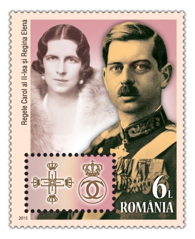 Pe timbrul cu valoarea nominală de 6,00 lei sunt ilustrate portretele Regelui Carol al II-lea şi Reginei-Mamă Elena ai României, alături de monogramele acestora. Regina-Mamă Elena a României a deveni o personalitate de prim rang a istoriei moderne a României. S-a căsătorit cu (atunci) Principele Moştenitor Carol la 10 martie 1921, iar după renunţarea la succesiune făcută de Carol, Parlamentul îi acordă titlul de Principesă a României.
