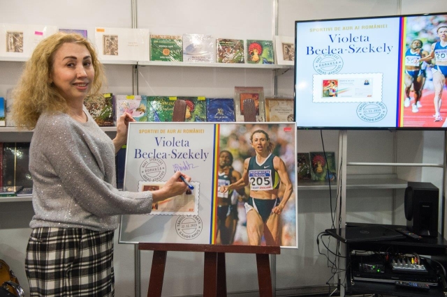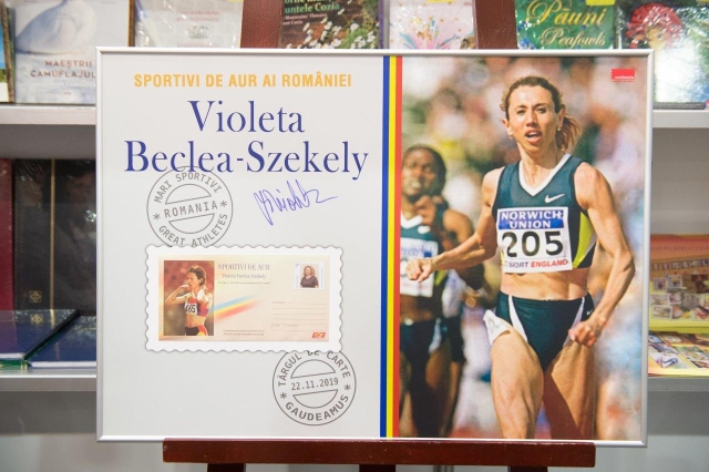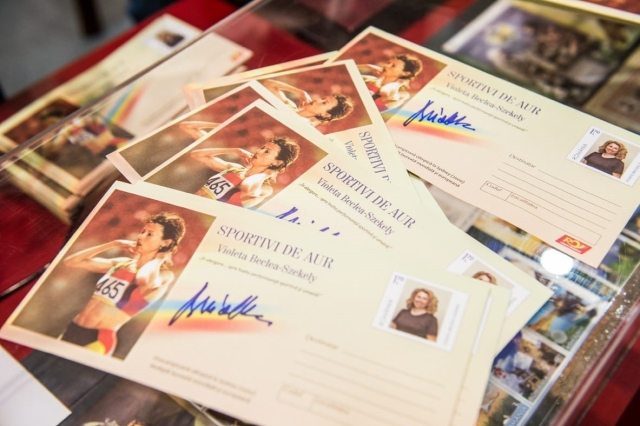 Prima lansare a fost a întregului poștal cu timbru imprimat intitulat „Sportivi de aur” dedicat doamnei Violeta Beclea-Szekely, cunoscută ca o atletă româncă de talie olimpică și mondială, în prezent fiind Director de Marketing la Comitetul Olimpic și Sportiv Român. Alături au fost colegii membrii familiei, colegii Comitetului Olimpic şi Sportiv Român şi admiratori.