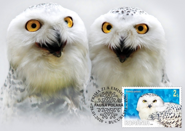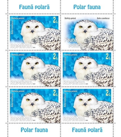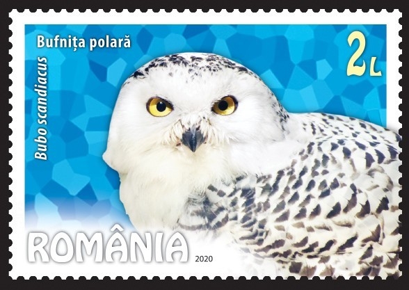 Bufnița polară (Bubo scandiacus) sau bufnița albă, ilustrată pe timbrul cu valoarea de 2 Lei, face parte din ordinul Strigiformes, familia Strigidae. Este răspândită în ținuturile polare nordice de tundră.