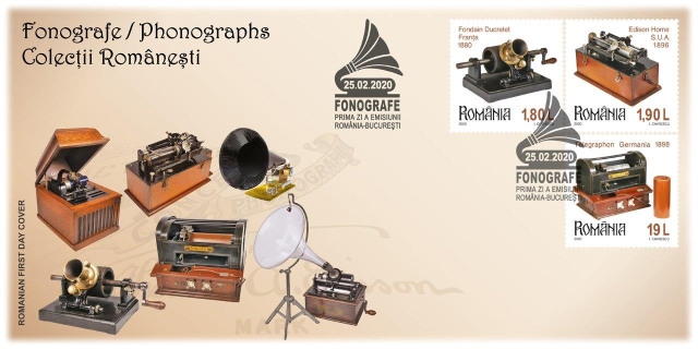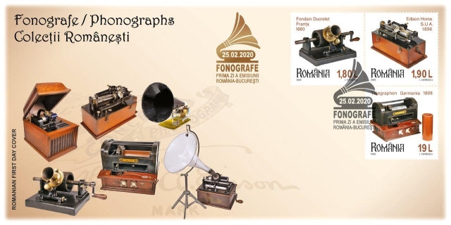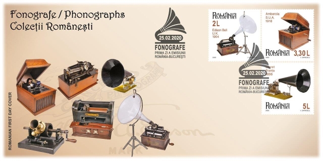 Romfilatelia dedică o nouă emisiune seriei Colecții românești intitulată Fonografe, ce va fi introdusă în circulație, marți, 25 februarie a.c..