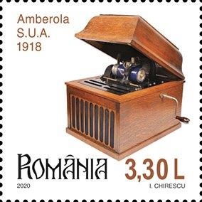 Pe timbrul cu valoarea nominală de 3,30 lei este reprezentat grafic un Fonograf Amberola. Acest tip de fonograf, creat de același Thomas Edison, datează din anul 1918 și este diferit de alte fonografe prin faptul că pâlnia este încorporată. Astfel, aparatul nu mai dispune de o pâlnie externă, detașabilă, ci mai degrabă de o cutie de rezonanță pentru amplificarea sunetului.