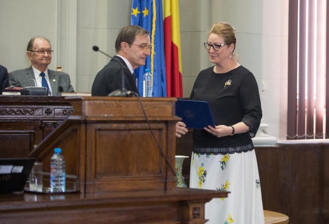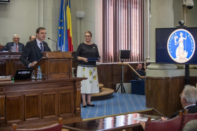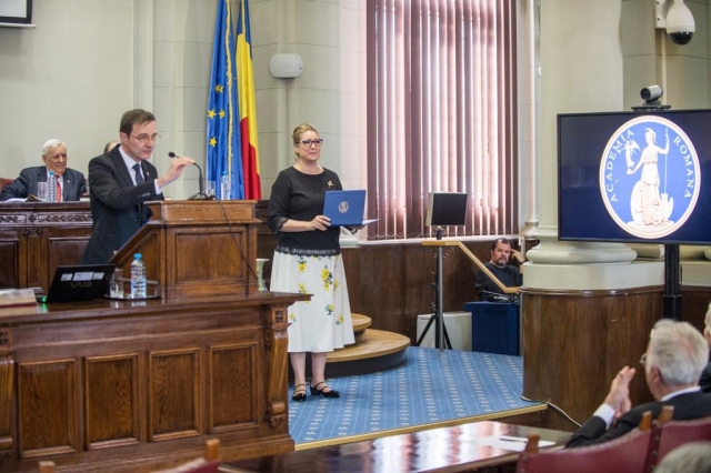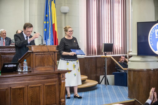 În acest cadru festiv, Președintele Academiei Române i-a conferit doamnei Cristina Popescu, Director General Romfilatelia, Diploma „Meritul Academic pentru cooperarea fructuoasă în cadrul Parteneriatului cu Academia Română”: „Îi mulțumesc doamnei Cristina Popescu pentru sprijinul pe care îl oferă Academiei Române, ori de câte ori este nevoie, prin publicarea, tipărirea acestor mărci poștale extraordinare”.