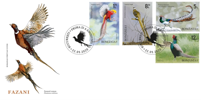 Romfilatelia continuă seria proiectelor dedicate Faunei, una dintre cele mai apreciate tematici în rândul colecționarilor, prin emisiunea de mărci poștale „Fazani”, care va intra în circulație vineri, 22 mai 2020.