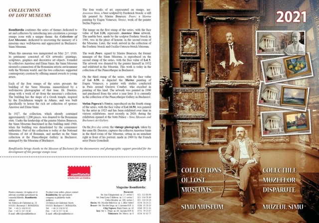 Romfilatelia continuă seria de tematici dedicate artei și colecționarilor, introducând în circulație o emisiune de mărci poștale cu o tematică inedită, Colecțiile muzeelor dispărute, dedicată recuperării memoriei unui muzeu odinioară foarte cunoscut și apreciat în București: Muzeul Simu.