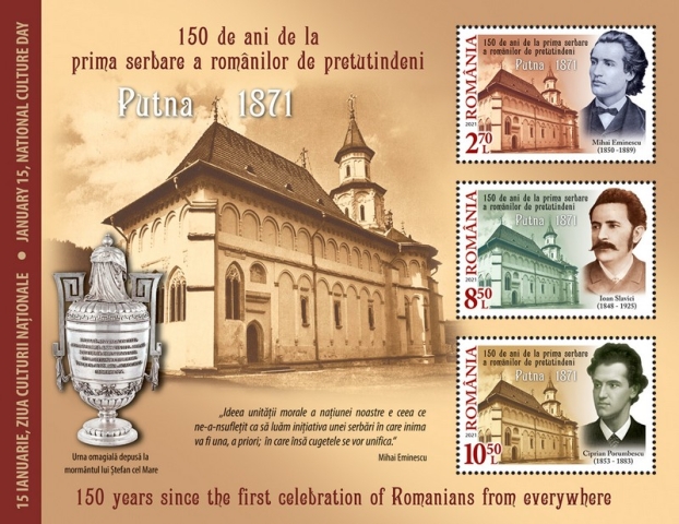 Pentru a evidenția o tematică abordată în premieră, Romfilatelia introduce în circulație emisiunea de mărci poștale „150 de ani de la prima serbare a românilor de pretutindeni”, eveniment care a avut loc la Mănăstirea Putna, în anul 1871.