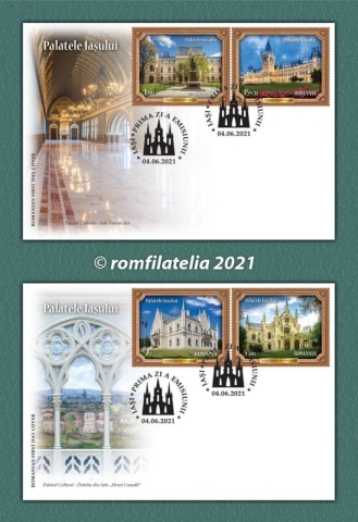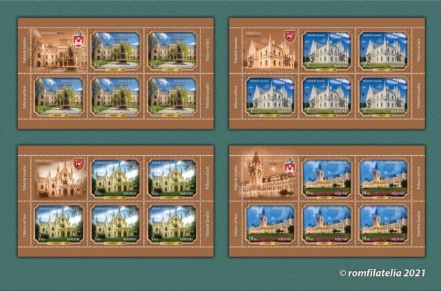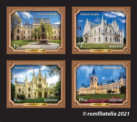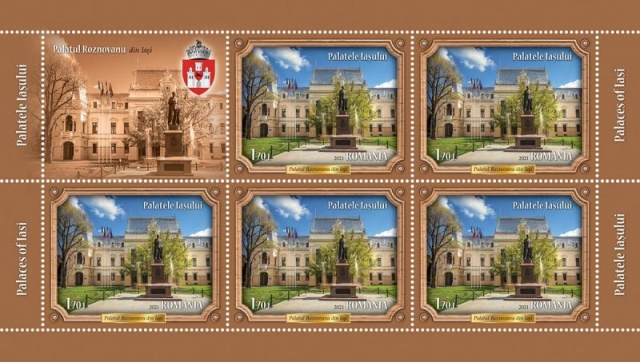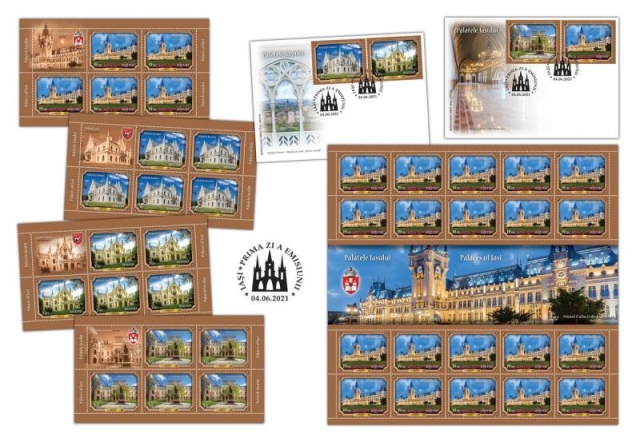 Romfilatelia introduce în circulație, vineri, 4 iunie a.c., o nouă emisiune de mărci poștale dedicată valorosului patrimoniu arhitectural al orașului și județului Iași: Palatele Iașului.