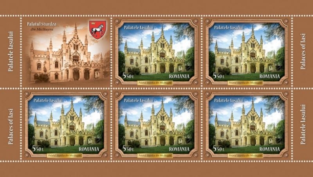 Pe timbrul cu valoarea nominală de 5,50 lei este reprezentat Palatul Sturdza din Miclăușeni, ridicat între anii 1880 și 1904 de către George A. Sturdza şi soţia sa Maria, pe locul unui vechi conac din 1755. În prezent, se află în proprietatea Mitropoliei Moldovei și Bucovinei.