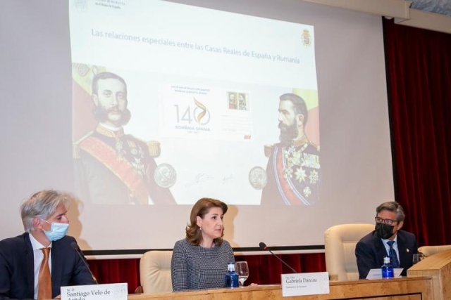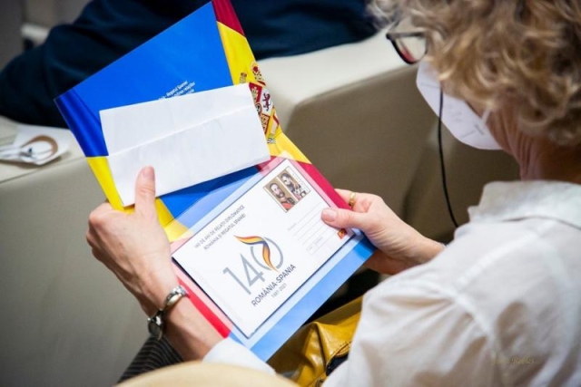 Doamna Gabriela Dancău, Ambasadorul României la Madrid, a prezentat întregul poștal aniversar, realizat în colaborare cu Romfilatelia, menționând că acesta ilustrează portretele regilor Carol I al României și Alfonso al XII-lea al Spaniei, regii care au domnit în cele două țări la momentul stabilirii relațiilor diplomatice.