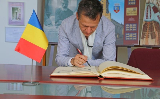 Artistul a avut amabilitatea să realizeze un desen în cartea de onoare Romfilatelia, intitulat „Sfinx și funie” – Sfinxul din Bucegi, simbol al durabilității, element des utilizat de artist în grafică, și funia, care reprezintă familie, unitate și verticalitate.