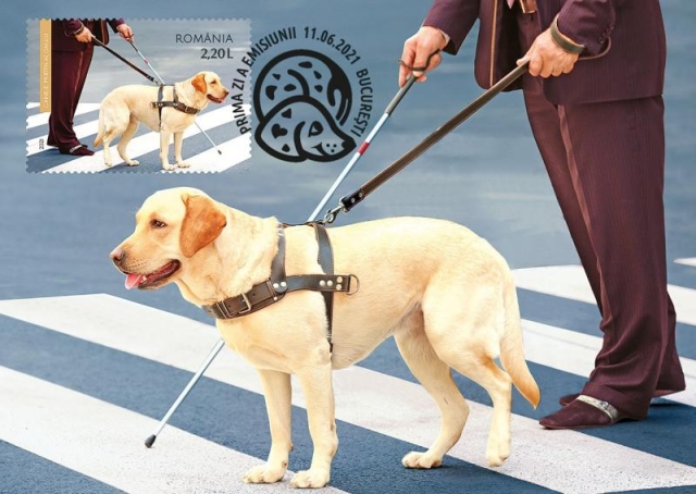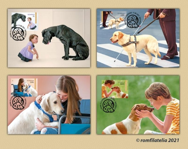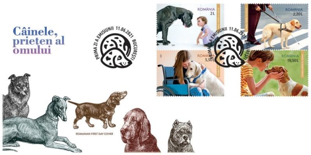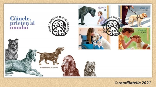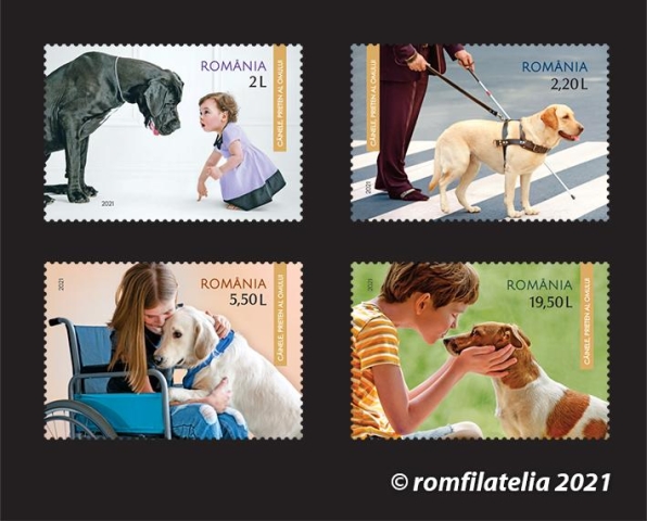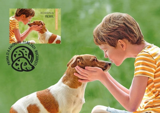 Pentru a sărbători această legătură, Romfilatelia introduce în circulație, vineri, 11 iunie 2021, emisiunea de mărci poștale Câinele, prieten al omului, emisiune alcătuită din patru timbre și un plic „prima zi” și completată de patru cărți poștale maxime. Cele patru timbre ale seriei, având valorile nominale de 2 lei, 2,20 lei, 5,50 lei și 19,50 lei, prezintă aspecte ale interacțiunii dintre om și câine, acesta din urmă apărând în ipostaze diferite: ajutor practic al omului (ca însoțitor al nevăzătorilor sau al persoanelor cu dizabilități motorii), dar și simplu prieten afectuos al copiilor.
