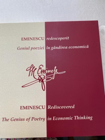 În cadrul programului a fost prezentat albumul filatelic “Mihai Eminescu redescoperit, geniul poeziei în gândirea economică”, a cărui prefața este realizată de academicianul Eugen Simion.