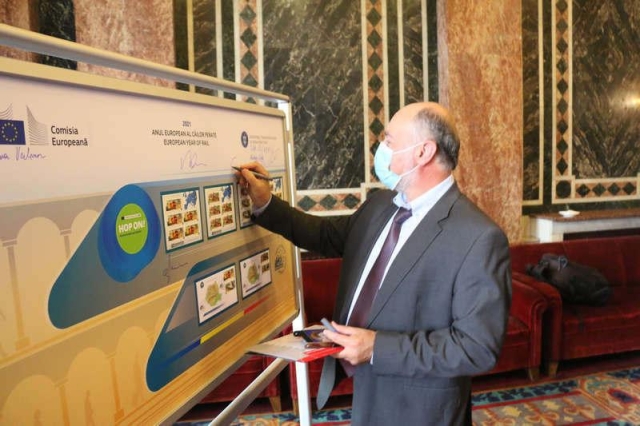 În prezența Comisarului European pentru Transporturi, Adina Vălea, Ministrului interimar al Transporturilor și Infrastructurii, Dan Vîlceanu, Primarului General al Capitalei, Nicușor Dan, Secretarului General adjunct al Ministerului Transporturilor, Adrian-Daniel Găvruță, oficiali ai Ministerului Transporturilor, autorităților locale și reprezentanților presei, Romfilatelia s-a alăturat manifestărilor prin realizarea panoului filatelic special, ce ilustrează elemente ale emisiunii de mărci poștale “Anul European al Căilor Ferate”, lansată vineri, 10 septembrie a.c.