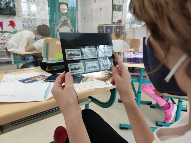 elev: Activitatea de Ziua Poștei mi-a plăcut mult, la fel și timbrele. Eu am primit timbre cu mijloace de transport. Vreau să le pun într-un clasor, deoarece continui colecția tatălui meu.