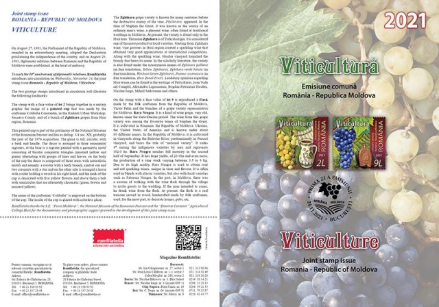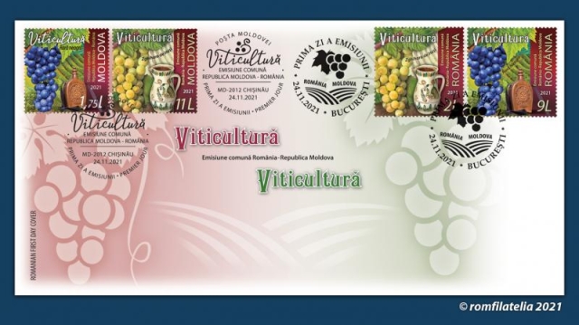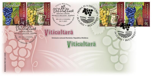 Pentru a marca împlinirea a 30 de ani de relaţii diplomatice, Romfilatelia introduce în circulaţie miercuri, 24 noiembrie a.c., emisiunea comună de mărci poştale România – Republica Moldova, Viticultură.