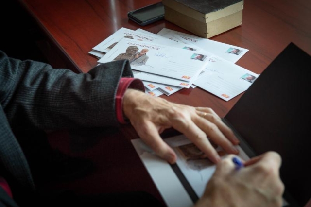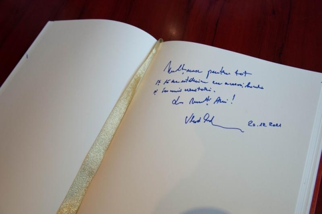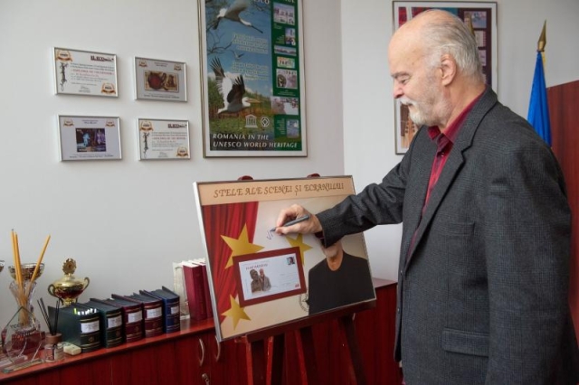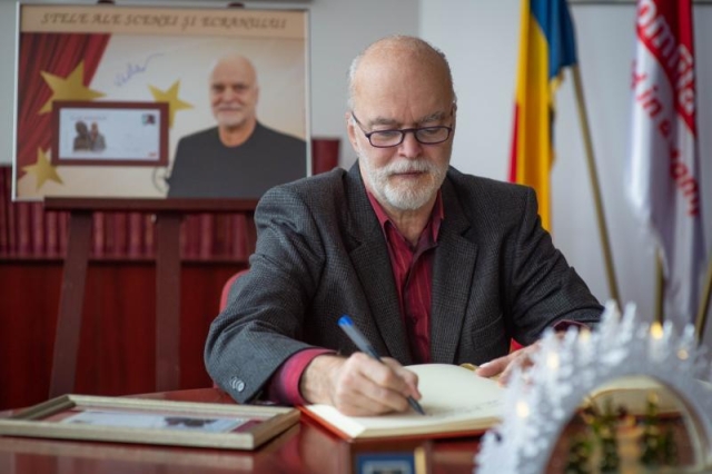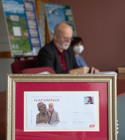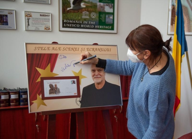 Actorul Vlad Rădescu, vizibil emoționat, a avut amabilitatea să ofere o sesiune de autografe și a scris câteva gânduri pentru echipa Romfilatelia, în Cartea de Onoare :