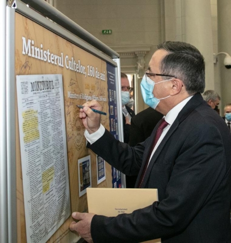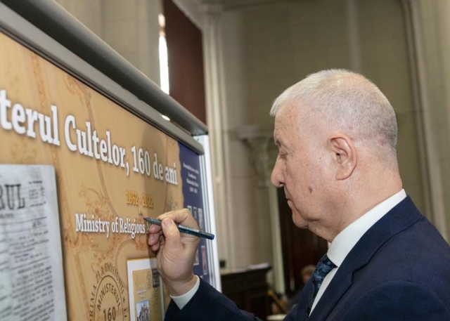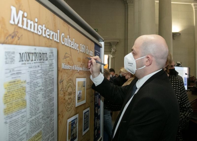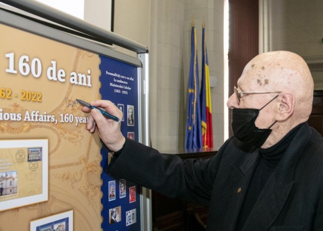 Romfilatelia, în calitate de partener instituțional al Academiei Române, a fost invitată să lanseze emisiunea filatelică dedicată acestui moment și a panoului filatelic aniversar “Ministerul cultelor, 160 de ani”, o nouă filă a enciclopediei istoriei naționale care se înscrie în patrimonul filatelic românesc.