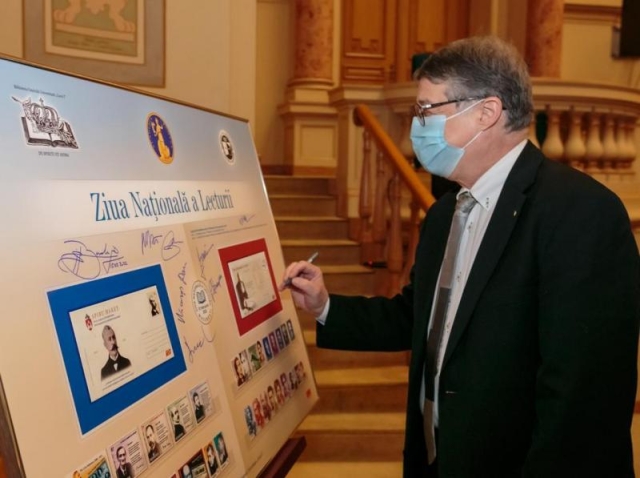 Au susținut alocuțiuni consilierul prezidențial Sergiu Nistor, deputatul Sebastian-Ioan Burduja, inițiatorul proiectului, ministrul culturii, Lucian Romașcanu, ministrul educației, Sorin Cîmpeanu, primarul general al Capitalei București, Nicușor Dan, prof.Mircea Dumitru, membru al Academiei Române, inspector școlar general Mihaela Ștefan, președintele asociației bibliotecarilor, Dragoș Neagu.