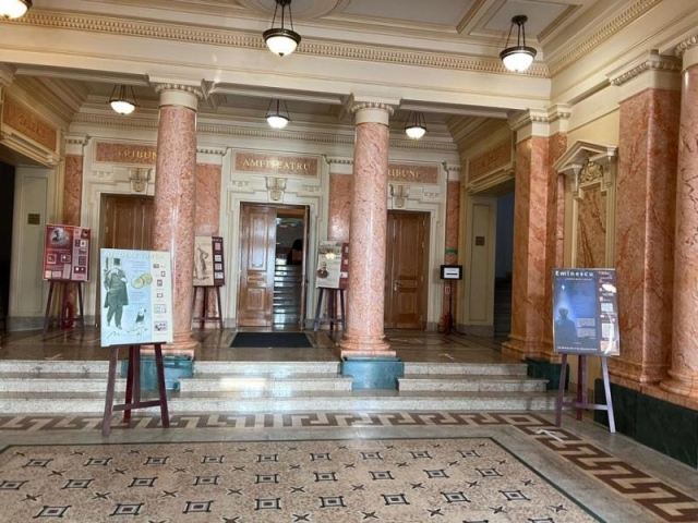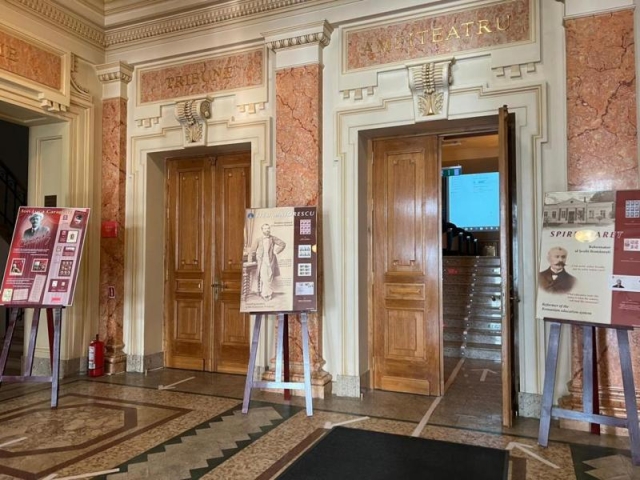 De asemenea, a subliniat că panoul prezintă în mod sugestiv două portrete ale lui Nicolae Iorga și Spiru Haret, însoțite de două întreguri poștale omagiale menite să fie puse la îndemâna marelui public pentru a readuce în memorie pe cei doi reformatori ai istoriei și învățământului românesc.