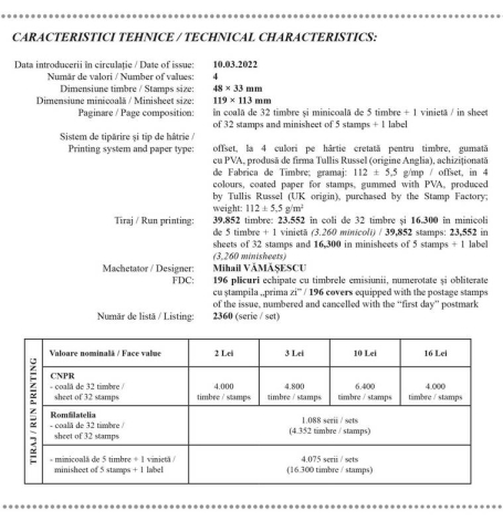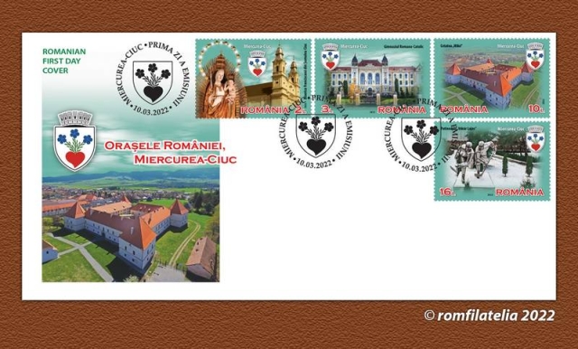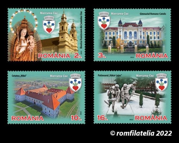 Romfilatelia introduce în circulație, joi, 10 martie 2022, o nouă emisiune de mărci poștale dedicată tezaurului arhitectonic urban al României: Orașele României, Miercurea-Ciuc.