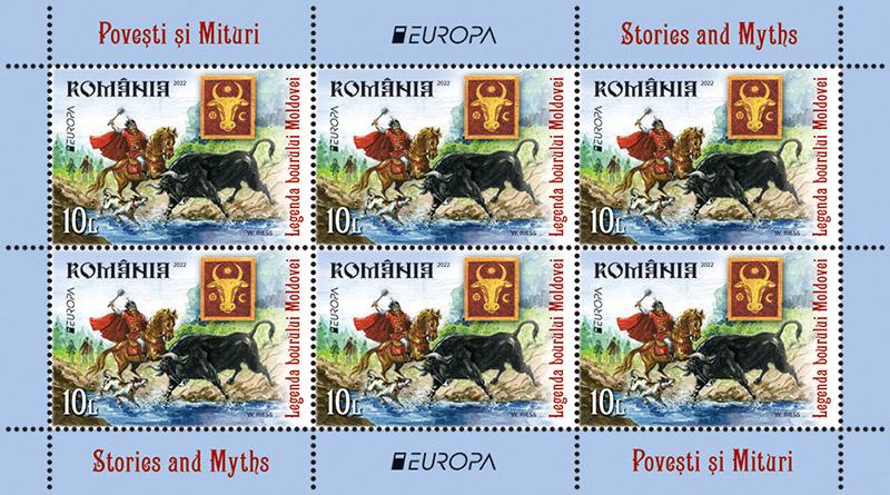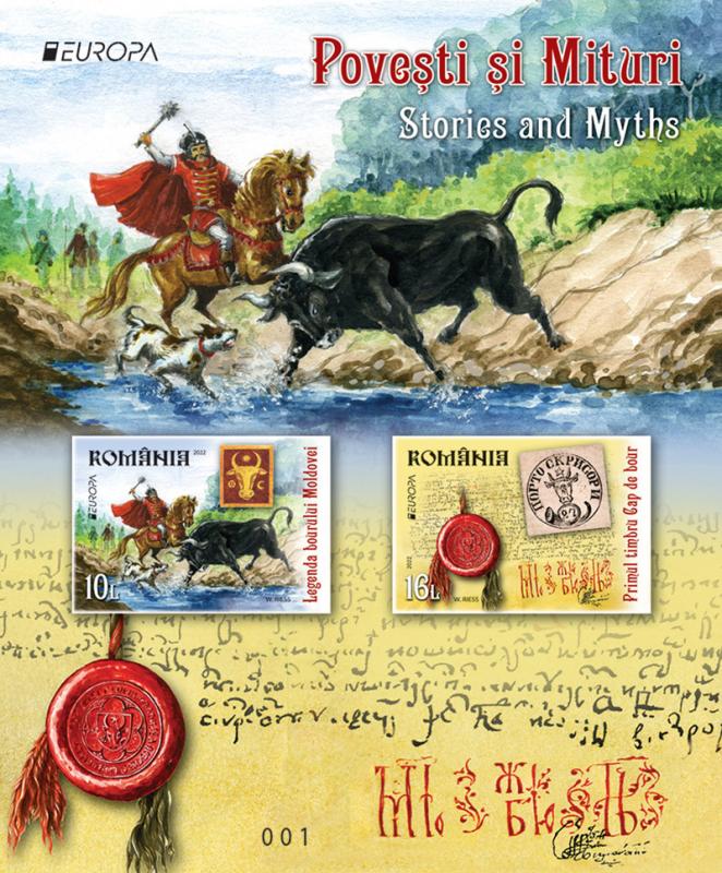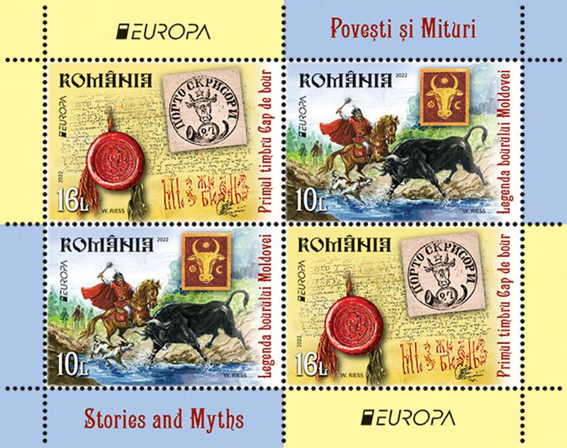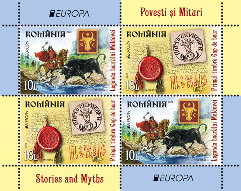 Venind în întâmpinarea Zilei Europei, Romfilatelia vă invită ca în fiecare an la o tematică dedicată, Povesti și Mituri, ilustrată în emisiunea filatelică a Legendei bourului Moldovei și a primului timbru „Cap de Bour”.