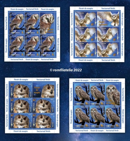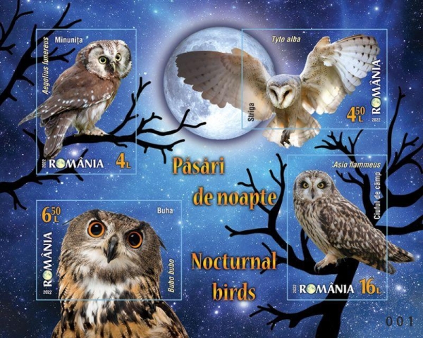 Romfilatelia adaugă la tematica dedicată „Faunei” o nouă emisiune de mărci poștale „Păsări de noapte”, ce va fi introdusă în circulație joi, 12 mai a.c.