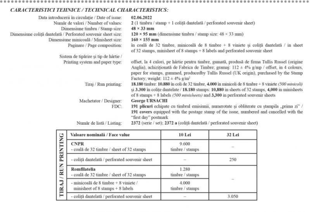 Romfilatelia mulțumește reprezentanților Editurii Monitorul Oficial pentru sprijinul documentar și fotografic acordat la realizarea acestei emisiuni de mărci poștale.
