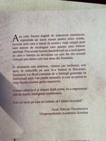 Bucuria și onoarea de a fi prezenți la omagierea marelui poet național – a fost marcată de prezenta Acad Eugen, Acad Maya Simionescu, Acad. Mircia Dumitrescu, membru corespondent al Academiei Române, Acad. Mihai Cimpoi, membru de onoare al Academiei Române, Acad. Wilhelm Dancă, membru corespondent al Academiei Române, Decanul Facultății de Teologie din cadrul Universității București, Mireille Radoi, directorul general al Bibliotecii Centrale Universitare „Carol I” din București, dr Radu Zamfir, invitați ai administrației locale din Chișinău, printre invitații speciali aflându-se și fiica regretatului poet basarabean Nicolae Dabija.