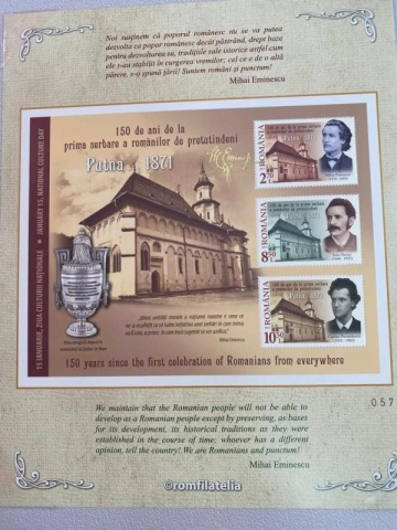 Romfilatelia, în calitatea sa de promotor al valorilor naționale, va continua seria proiectelor filatelice dedicate„poetului national nepereche”, Mihai Eminescu.