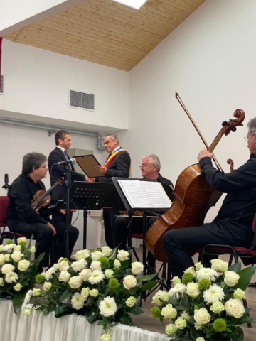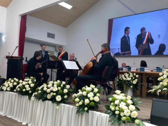 Evenimentul a fost completat de momente muzicale emoționante oferite de Cvartetul Transilvan, Gabriel Croitoru fiind vioara I.