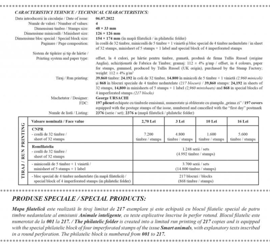 Romfilatelia mulțumește reprezentanților Muzeului Național de Istorie Naturală „Grigore Antipa” pentru sprijinul documentar acordat la realizarea acestei emisiuni de mărci poștale.