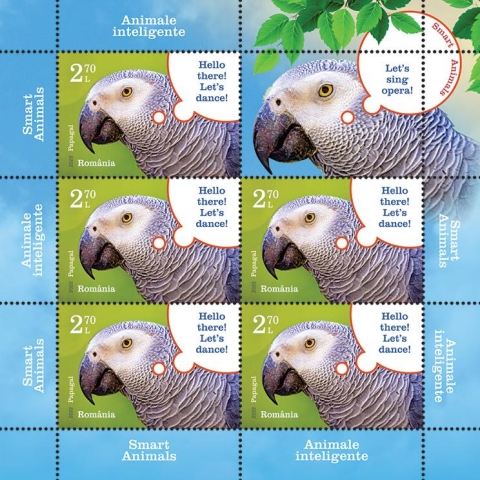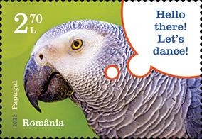 Pe timbrul cu valoarea nominală de 2,70 Lei este redat papagalul, deseori preferat ca animal de companie pentru inteligență, datorită căreia înțelege și se adaptează mediului înconjurător, dobândind noi abilități.