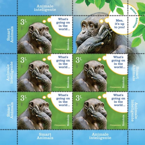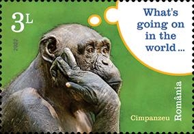 Pe timbrul cu valoarea nominală de 3,00 Lei este ilustrat cimpanzeul, care își dovedește inteligența prin capacitatea de comunicare și înțelegere, fiind capabil să învețe limbajul semnelor, dar și folosirea mai multor instrumente, întrecând la îndemânare orice alt animal de pe planetă.
