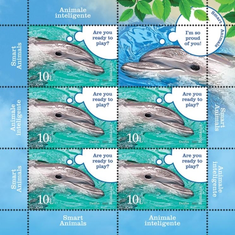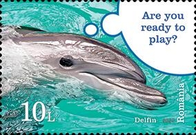 Delfinul, reprezentat pe timbrul cu valoarea nominală de 10 Lei, îndeplinește sarcini dificile, învață din experiență și transmite cunoștințele celorlalți indivizi din grup.