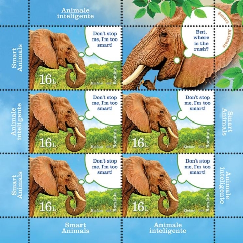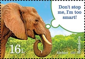 Elefantul, ilustrat pe timbrul cu valoarea nominală de 16,00 Lei, trăiește în turme, cu un mod de organizare matriarhal. Elefanții comunică unul cu altul și se pot identifica de la trei kilometri distanță.