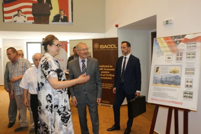 Panourile filatelice prezentate cu emisiuni de marci postale cu emisiuni de mărci poştale emise în perioada 1939-2015, cu tematici dedicate relaților diplomatice și parteneriatului strategic dintre România și SUA, s-au armonizat cu expoziția de fotografii și documente personale ale domnului Emil Constantinescu.
