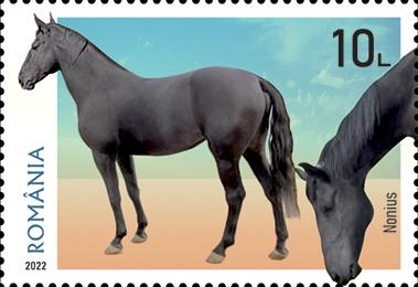 Nonius, este reprezentat pe timbrul cu valoarea nominală de 10 Lei. Bazele formării rasei au fost puse în secolul XIX în Ungaria, cu scopul de fi utilizat la tracţiune. Numele provine de la armăsarul anglo-normand Nonius, de provenienţă franceză, capturat de cavaleria austro-ungară.