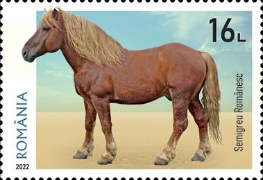 Semigreu Românesc, redat pe timbrul cu valoarea nominală de 16 Lei, este o rasă relativ recentă, creată pentru a furniza un răspuns la o necesitate a anilor ’50, obţinerea unei rase cu aptitudini pentru muncă, puternică şi mobilă.
