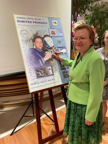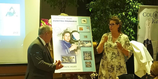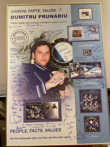 A urmat lansarea întregului poștal și dezvelirea panoului aniversar, care a fost semnat atât de către domnul Dumitru-Dorin Prunariu, cât și de invitați.