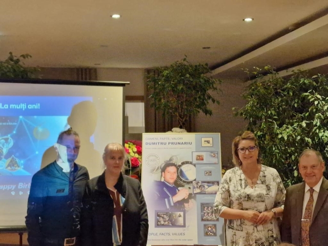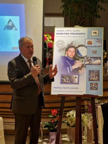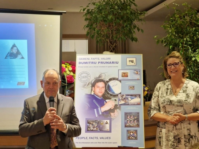 Filatelia românească a omagiat în repetate rânduri misiunea spațială la care a participat Dumitru-Dorin Prunariu începând din anul 1981, cosmonautului român fiindu-i dedicate mai multe emisiuni de mărci poștale, pe care Directorul General Romfilatelia, Cristina Popescu, le-a prezentat invitaților, aducând un omagiu renumitului cosmonaut și prieten al timbrului românesc.