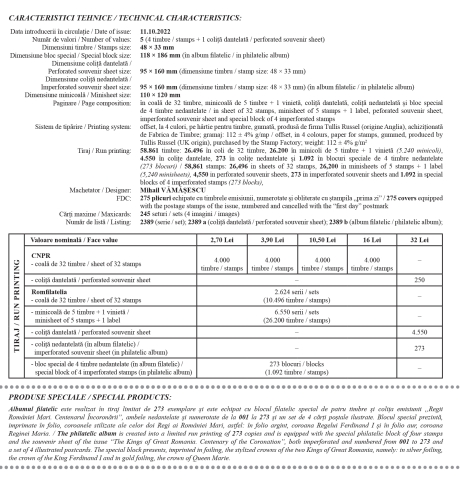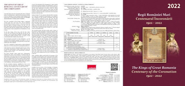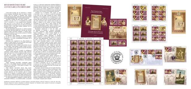 Consecventă misiunii sale de promovare a valorilor istoriei naționale, Romfilatelia introduce în circulaţie emisiunea filatelică aniversară Regii României Mari. Centenarul Încoronării, moment de referinţă în istoria României.